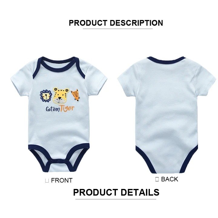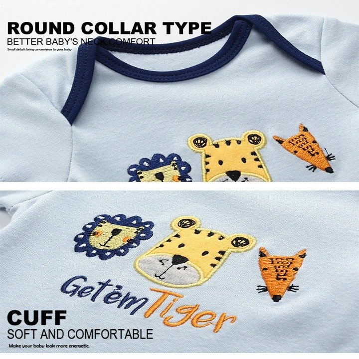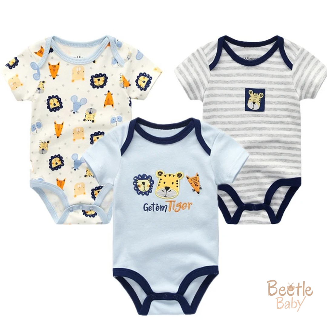 מארז 3 בגדי גוף לתינוקות עם הדפס מתוק של אריה ושרוול קצר מושלם לקיץ!