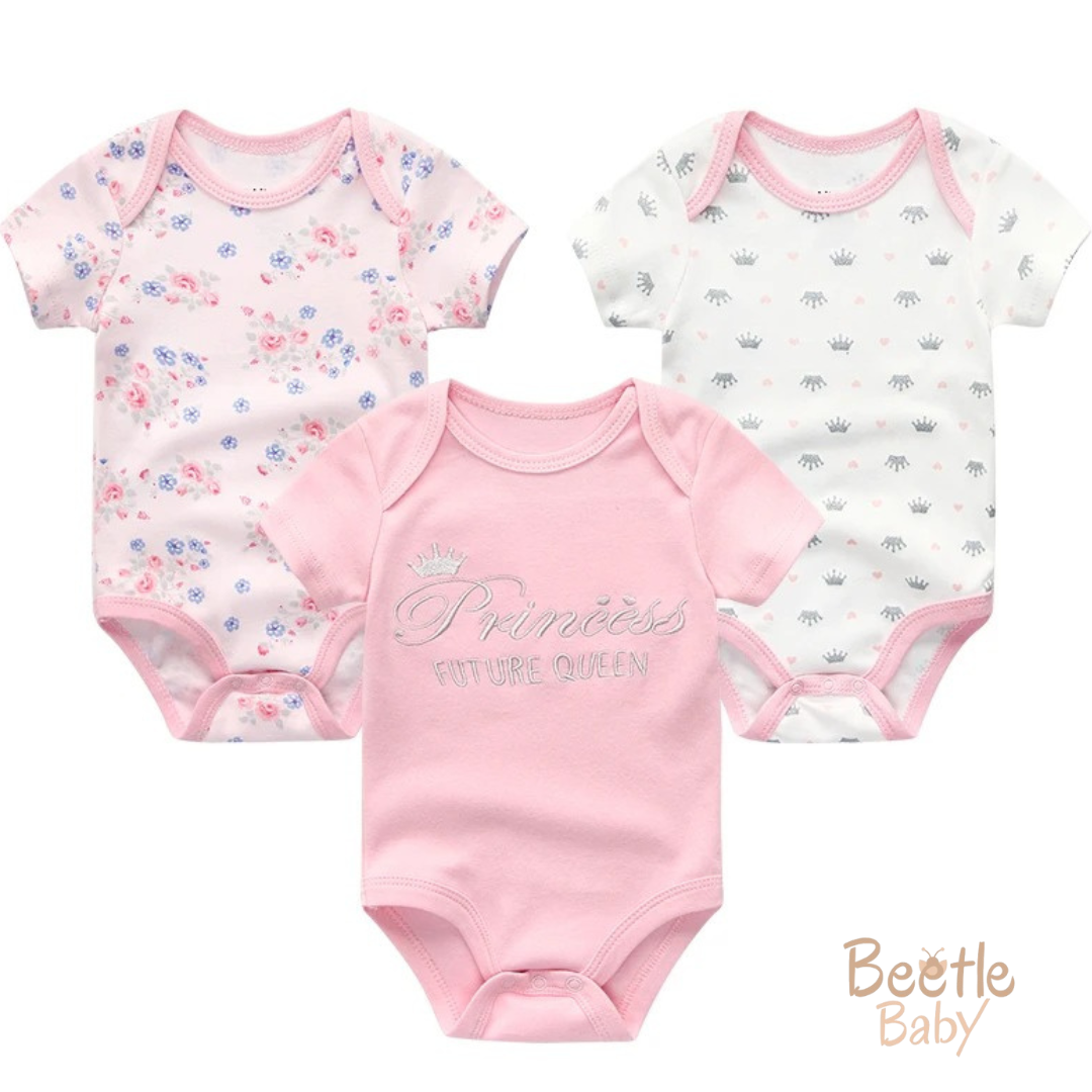 מארז 3 בגדי גוף לבנות עם שרוול קצר עם הדפס של נסיכות